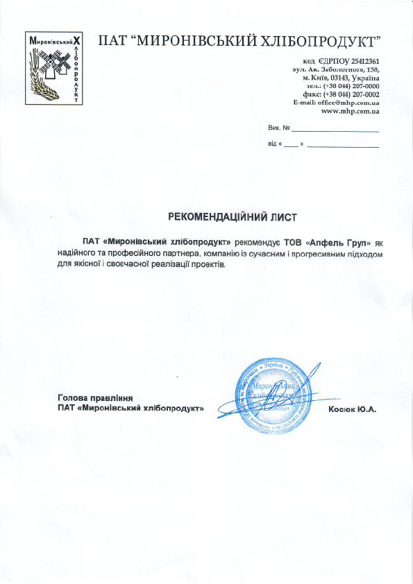 Chairman of the Management Board of PJSC "Myronivsky Hliboproduct" Kosyuk Y.A.
