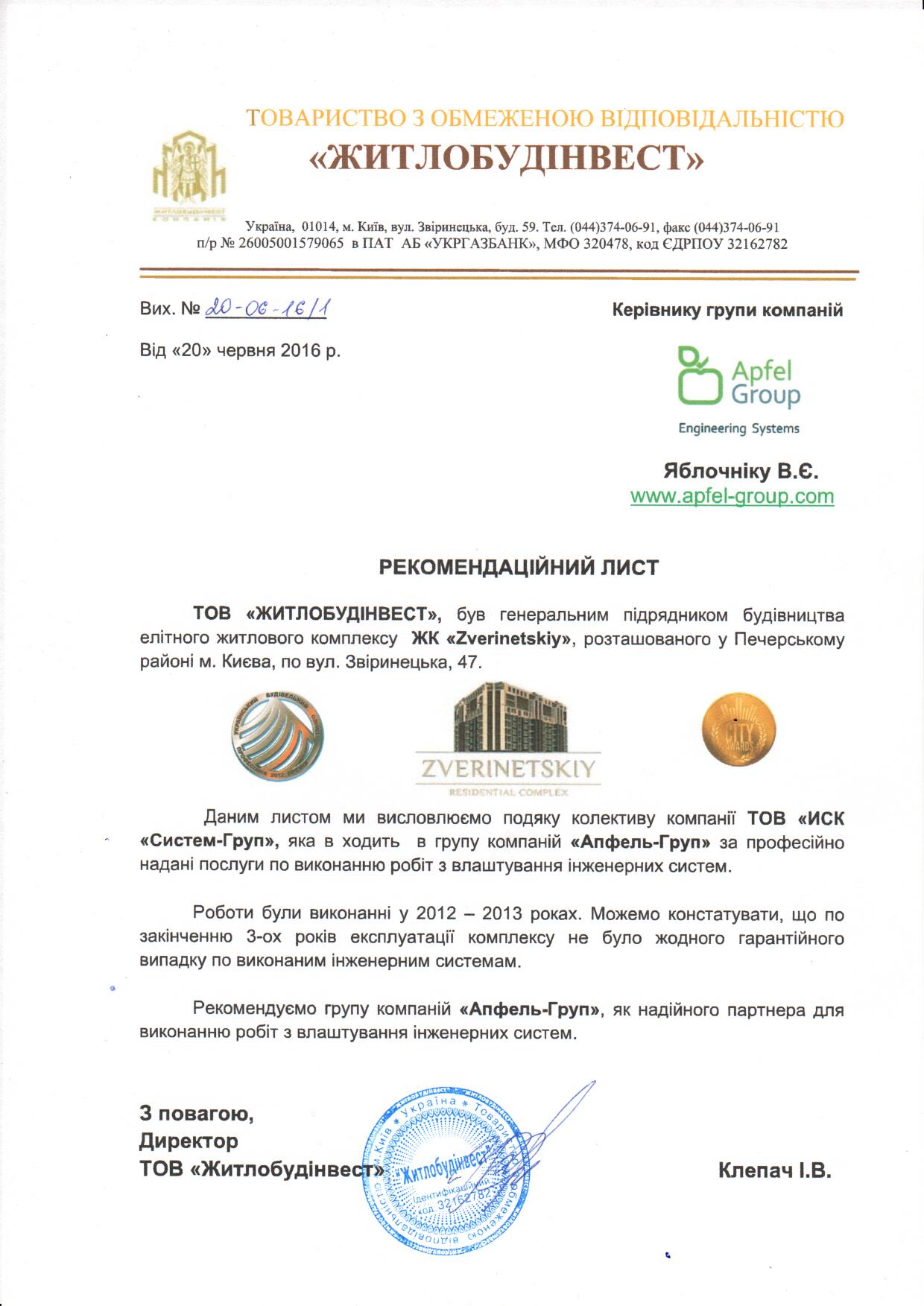 With the company ApfelGroup, we have implemented housing estate "Zverinetskiy", where we entrusted it the construction of ventilation systems, smoke exhaust and air overpressure.