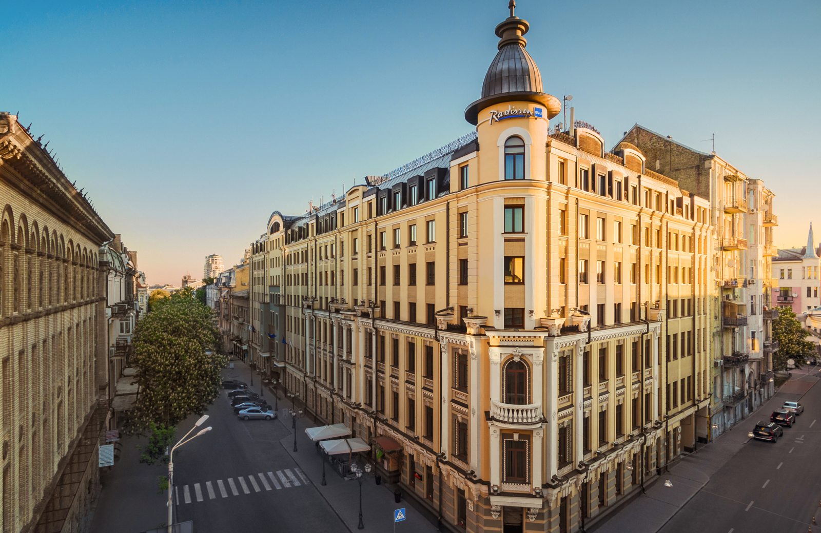 - Готель Radisson Blu розташований у центрі Києва, за 5 хвилин ходьби від станції метро «Золоті ворота» та за 1 км від вулиці Хрещатик. Це ділова та культурна артерія міста з численними кафе, бутіками світових брендів та офісами міжнародних компаній.