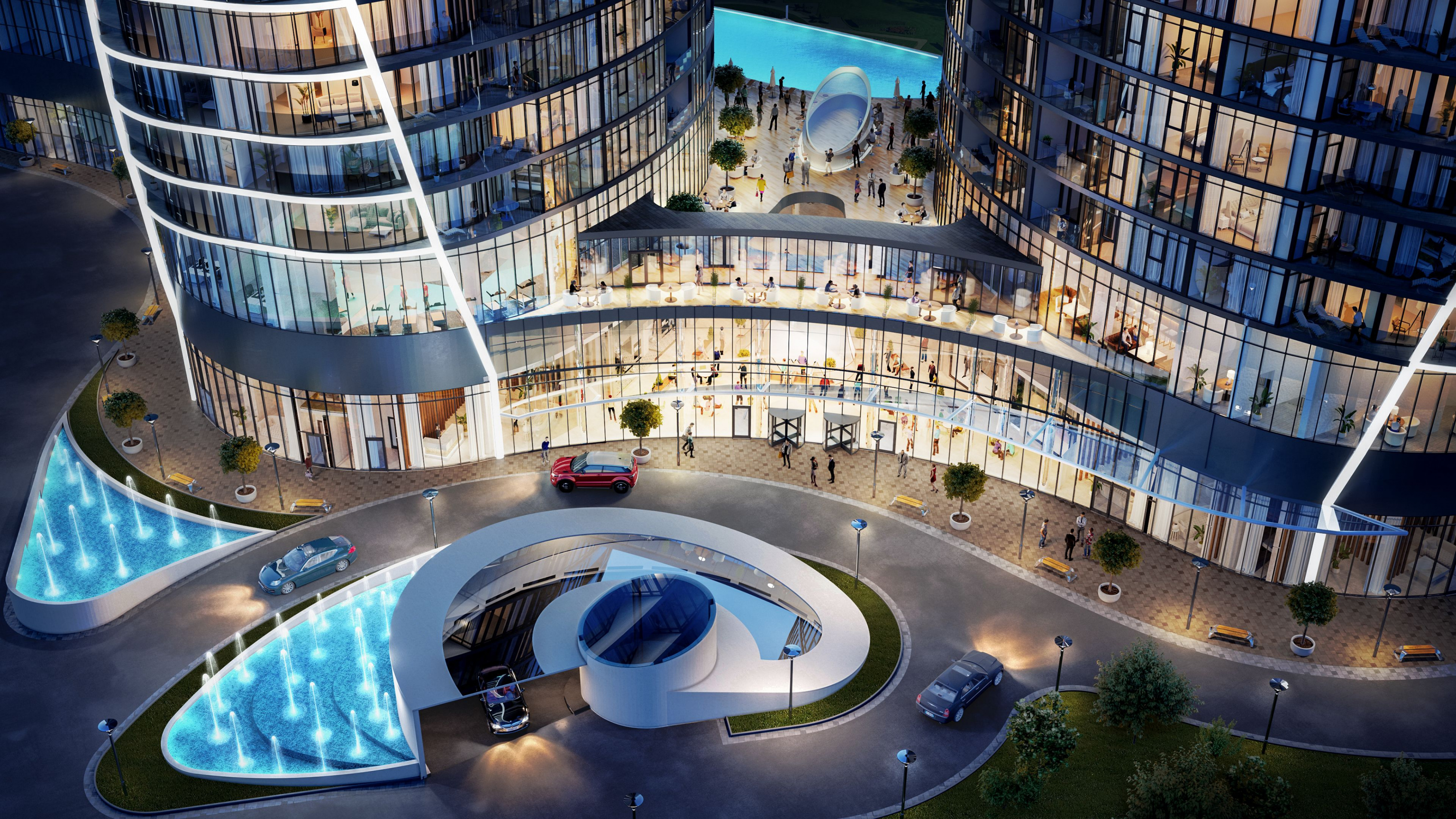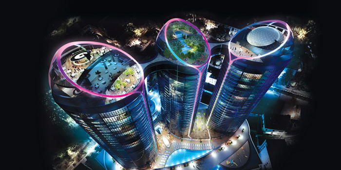 Taryan Towers – це не башти-близнюки: кожна будівля матиме свою концепцію. У першій вежі буде відкрито панорамний ресторан з видами столиці, на даху другої вежі – парк просто неба зі штучним озером і зимовим садом, а на даху третьої вежі буде кінотеатр, планетарій і музей майбутнього.