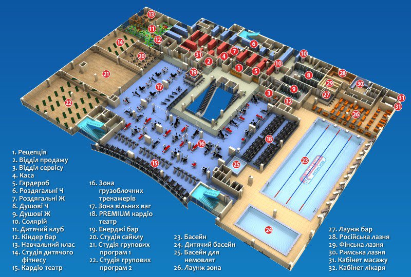 Это первый объект сети реализованный проект на базе тепловых насосов мультизональных систем с утилизацией тепла конденсации на нужды системы горячего водоснабжения клуба и подогрева воды в бассейнах.